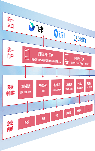 对协作平台提供支持服务,,,支持企业应用与协作平台对接,,包含组织同步、、、消息集成、、、待办集成等。。支持目前主流的协作平台:钉钉、、企微和飞书。。。。